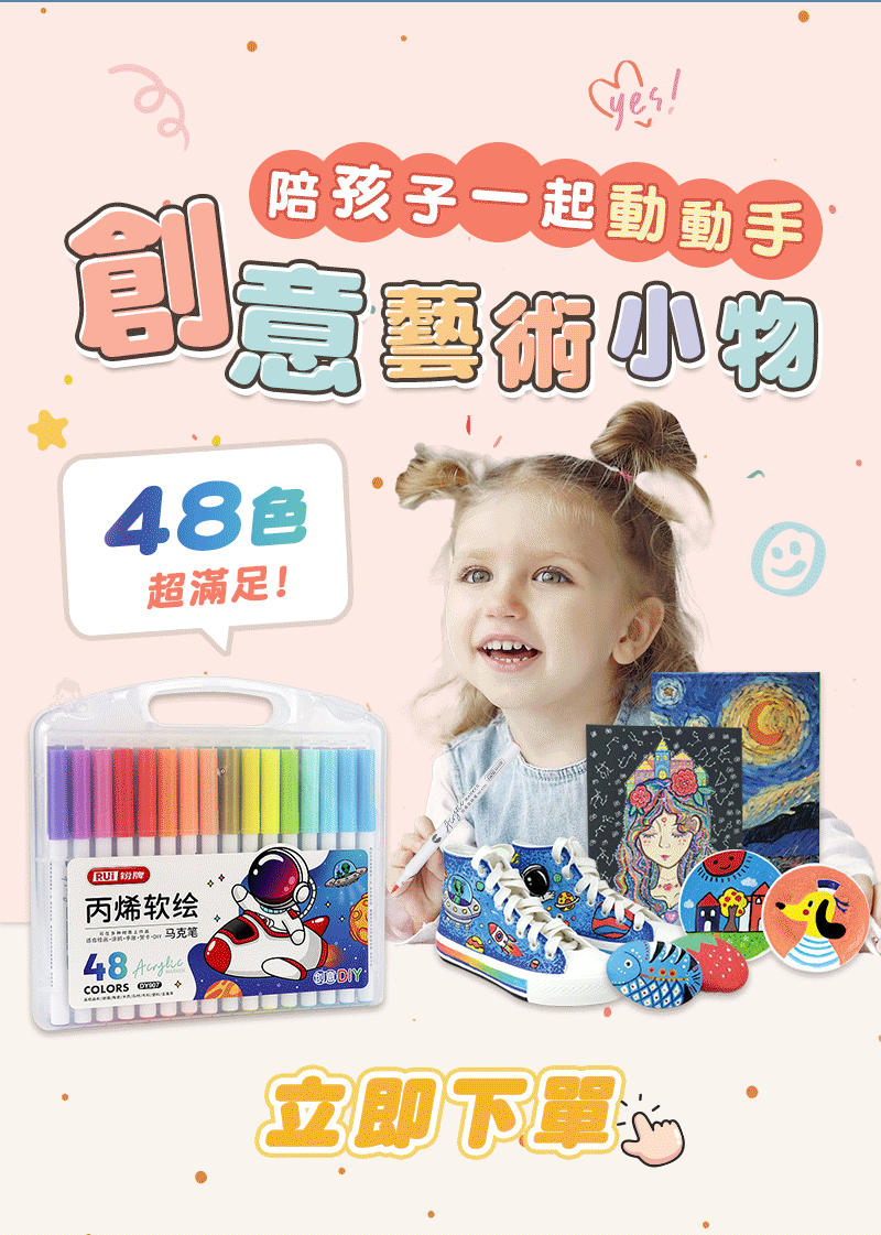 12分鐘前丙烯彩繪馬克筆 超強覆蓋力,萬物材質皆可畫,專為兒童研發,輕鬆擦拭不卡色 - 【一套】丙烯彩繪馬克筆 (48色)NT$580