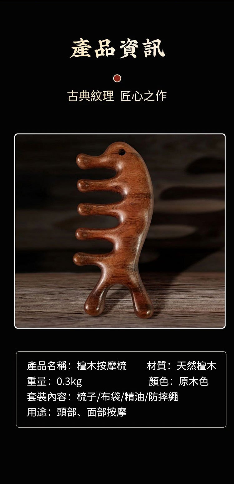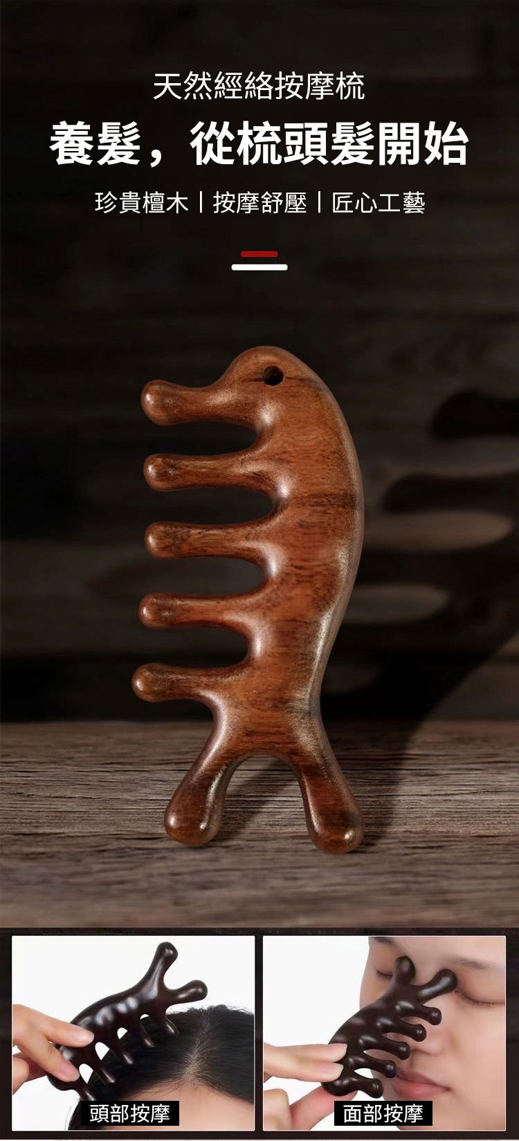 5分鐘前天然檀木美容經絡按摩梳 ◀頭臉按摩◀疏通經絡◀刮痧排毒 按摩穴位促進排毒,面部提拉緊緻 - 【緩解頭痛,按出健康】5入組HK$346