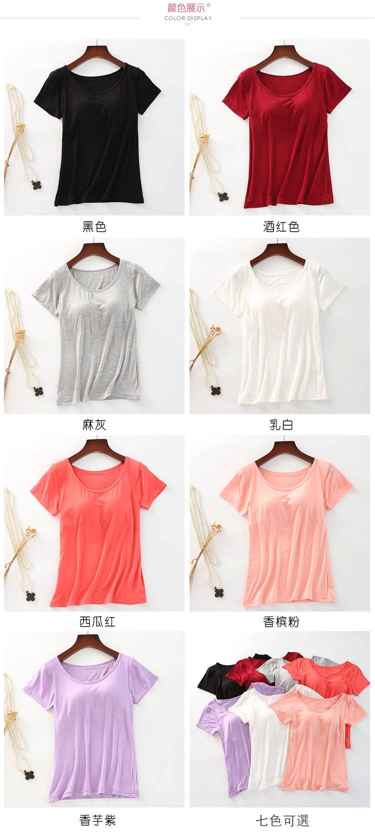 半小時前【廠家直銷 買一送一】夏季爆款莫代爾帶胸墊可外穿家居短袖,一體式無鋼圈設計,方便舒適,告別鋼圈束縛,柔軟莫代爾面料,不舒服包退!限時售價!買到賺到 - 【買一送三】任選4件 均價299