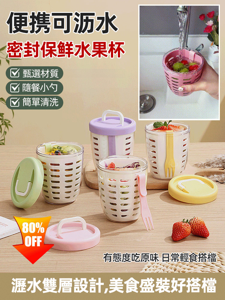 7分鐘前便攜可瀝水密封保鮮水果杯 - 買三送三1299